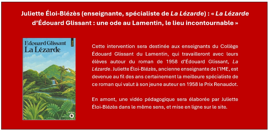 - Vers le mois d’août, organisation d’un parcours mémoriel dans le Lamentin, avec des membres de la famille d’Édouard Glissant